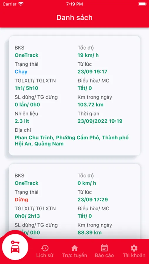 2. Tính năng xem lại lộ trình giúp bạn xem lại lộ trình mà xe đã đi trong quá khứ.