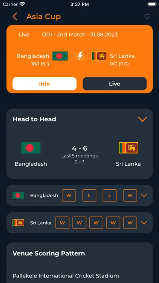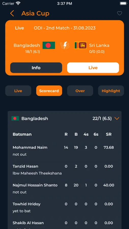 - You will get to know both teams live Cricket scores of both innings (the team's total scored runs and wickets fallen with total overs).