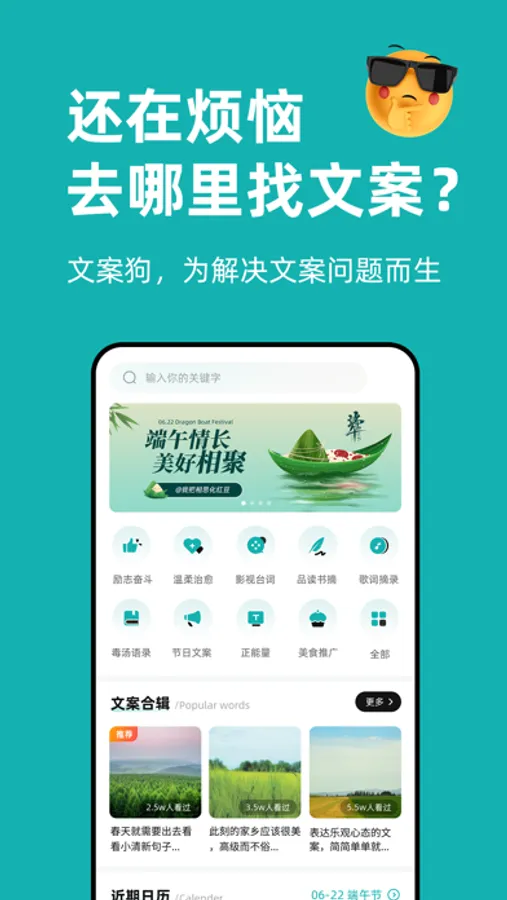 文案狗APP拥有覆盖各个行业的丰富文案案例,有海量AI语料库,有独特的搭配工具,让您轻松写出聪明精彩的文案!