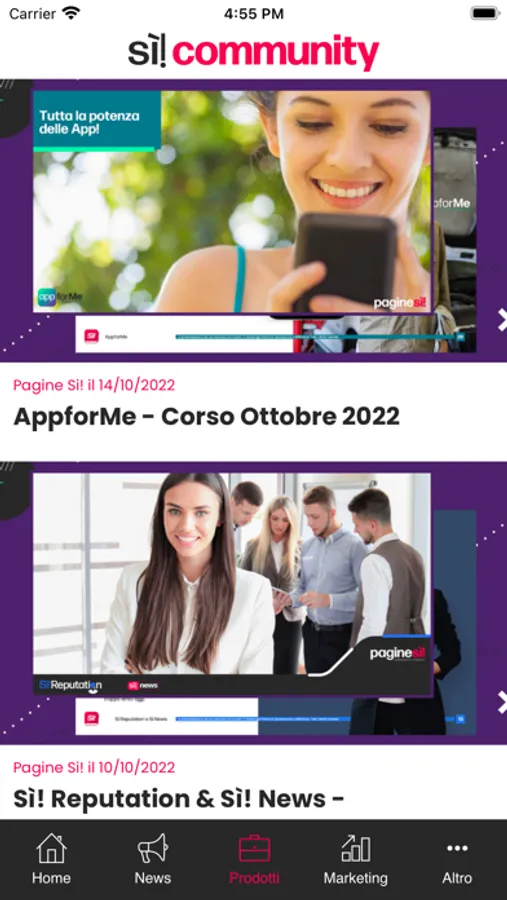 Si! Community ti aggiorna sulle news e sui comunicati aziendali. Troverai anche i supporti di marketing per aiutarti nelle tue presentazioni prodotto. Sarai sempre aggiornato sugli incontri aziendali e sui recapiti dei vari reparti.