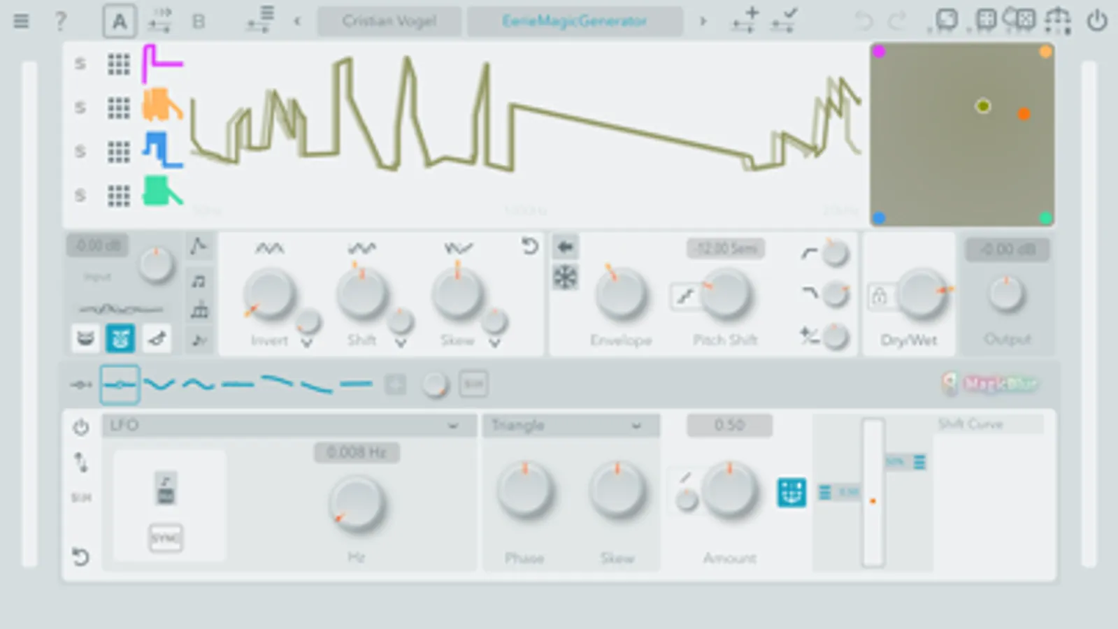 Optionally you can deactivate the morphing part and turn the whole thing into a spectral freezer. And if that’s not cool enough (no pun intended) you can even reverse the morph direction, apply envelopes and shift the pitch to create unique sounding effects never heard before.