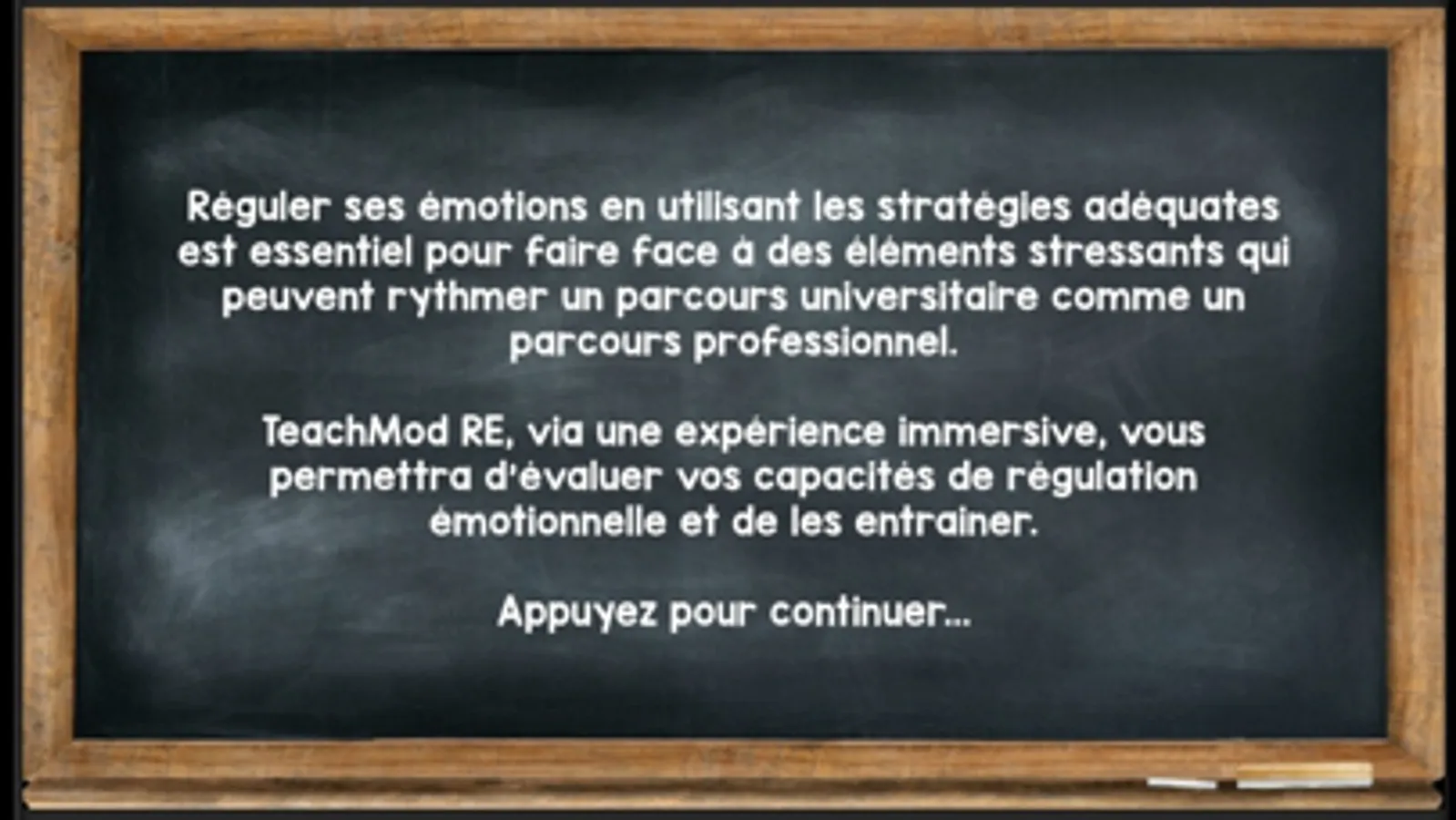 TeachMod RE, via une expérience immersive, vous permettra d’évaluer vos capacités de régulation émotionnelle et de les entrainer.