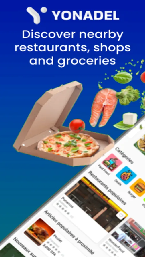 The Yonadel app allows you to order your meals and groceries from the comfort of your sofa. We connect users with nearby restaurants and vendors through a simple and secure system. Users can order, pay for their order and have it delivered by a fast service. In the event that nearby restaurants don't have the user's choice of food, we offer information on other great restaurants, stores and options around the area.
