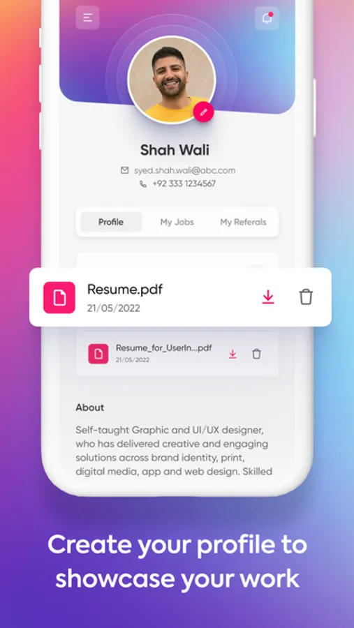 You can create your customized profile by uploading an avatar, creating and managing your past experience, and education, and manage your submitted applications.