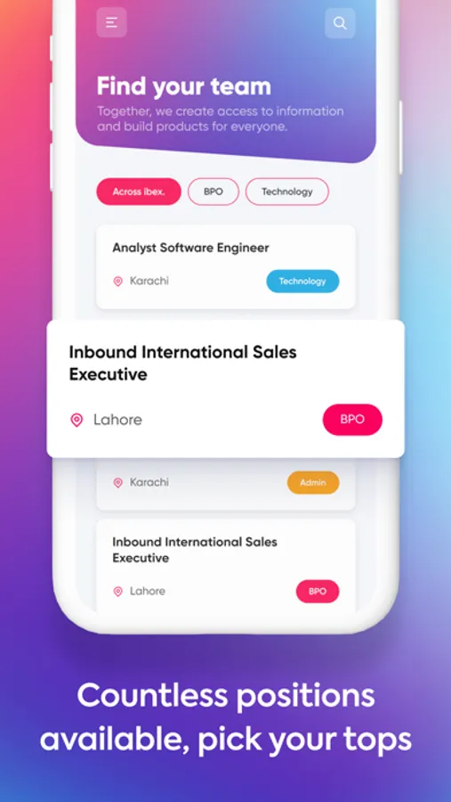 You should be able to see the latest job opening within ibex. Pakistan and will be able to apply directly via the app.