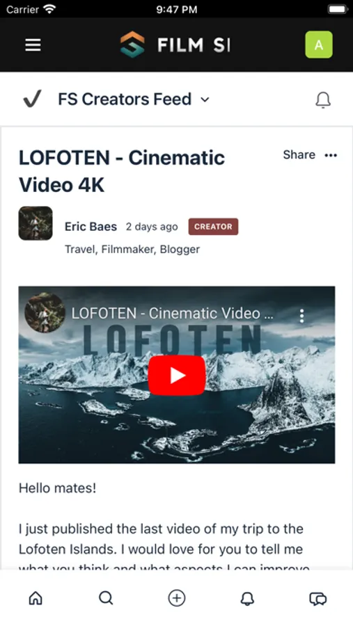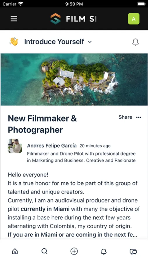 -Share your work with 1000's of other filmmakers on our rich & engaging post feed. Receive likes, comments and shares on your posts with integrated notifications allowing you to always stay in the loop.