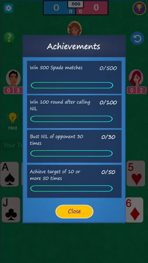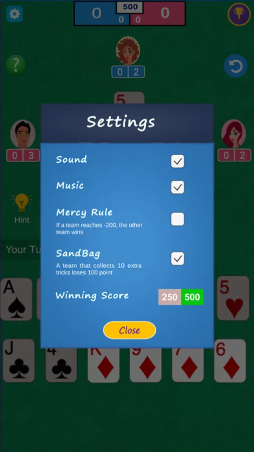 Play the famous game of Spades against opponents simulated by advanced artificial intelligence..