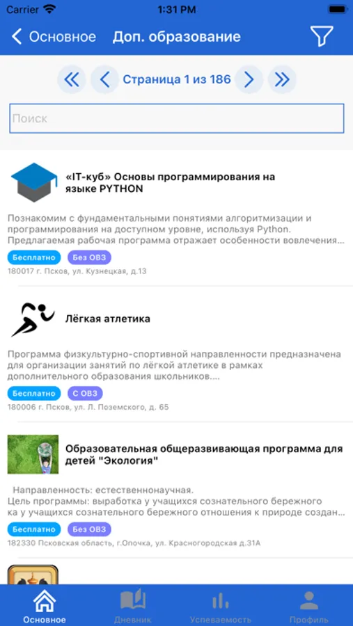 С приложением «Образование Псковской области» получайте информацию об оценках, расписании уроков, домашнем задании, подберите интересующую вас программу дополнительного образования и получайте информацию о региональных новостях в сфере образования.
