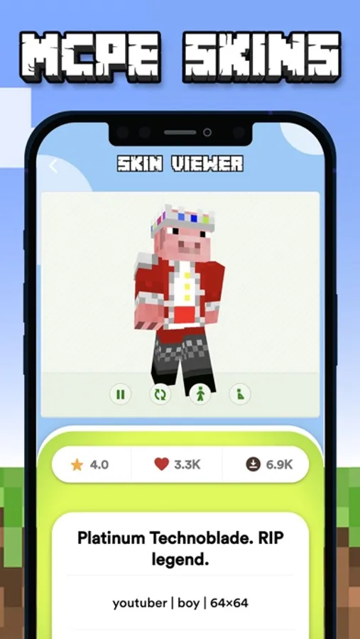 - Huge collection of unique mcpe skins with 3D preview.