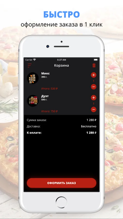 Воспользуйтесь удобным приложением для заказа еды «SUSHI PIZZA».