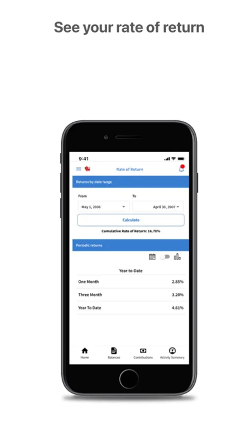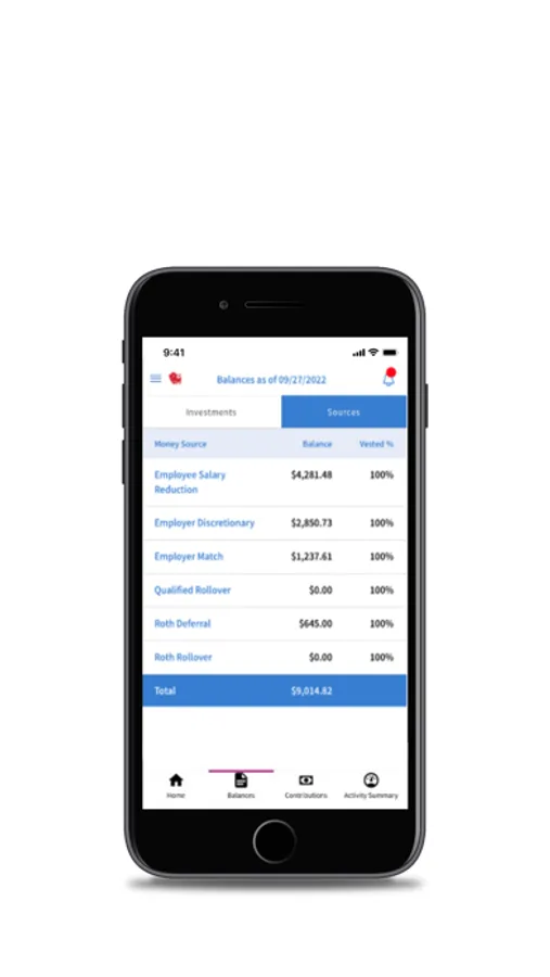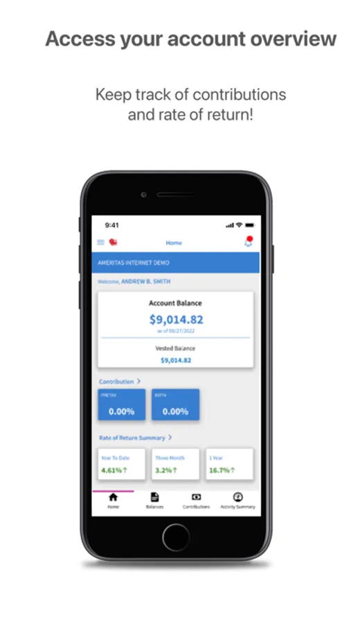 With the Ameritas retirement mobile app you have easy access to key account information including account balance, rate of return, contribution rate, activity summary and more – anytime, anywhere.
