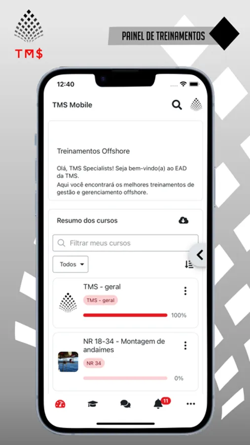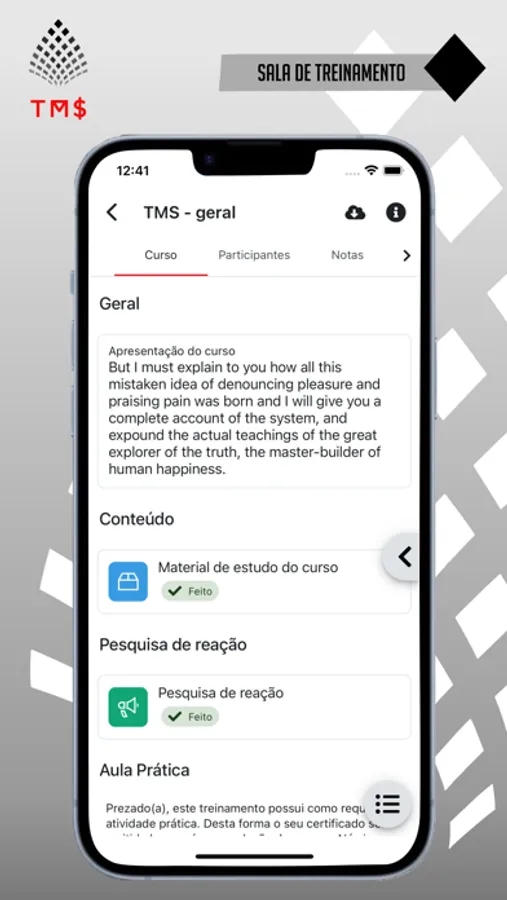 Esta é a versão mobile para TMS, este é projetado para simplificar o acesso às aulas do curso, trabalhos e atividades.
