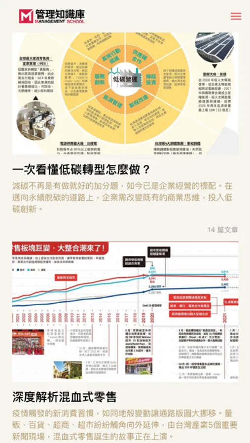 ● 收藏文章:一鍵收藏後依學程收納分類,打造自己的管理智庫