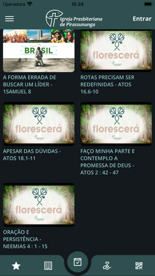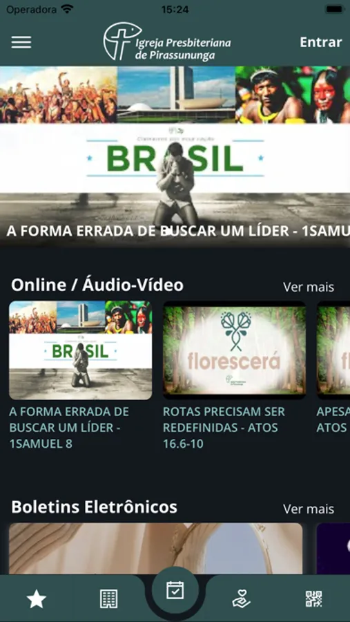* Conteúdos (Áudio/Vídeo): Permite visualizar e ouvir os conteúdos da Igreja disponíveis no App;