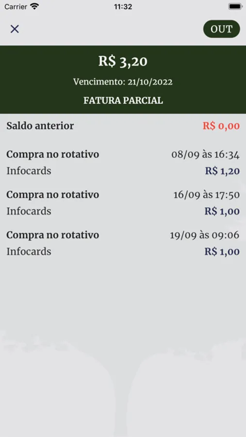 - Consulte o limite disponível, seu saldo atual e o status do seu cartão de crédito.