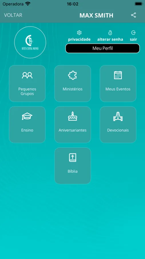 * No item Meu Perfil é possível atualizar seus dados cadastrais na Igreja;