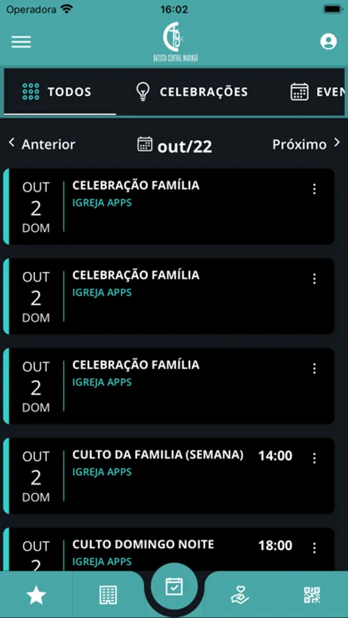 * Agenda: Veja um calendário completo de Cultos, Eventos, sua Escala em Ministérios/Departamentos da Igreja;