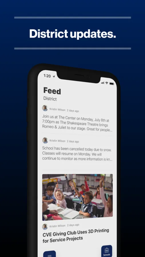 In the Live Feed is where you'll find updates from the administration about what's going on in the district right now. Whether that's celebrating a student's success, or reminding you about an upcoming deadline.