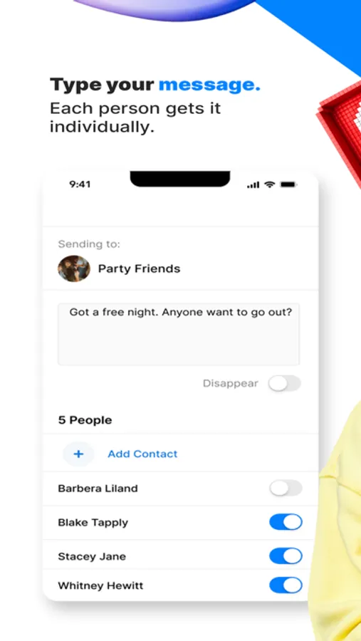 • Party Planning - Having a party and forgot to send out invites? With one message, share all the details of your event without putting everyone in a group message.