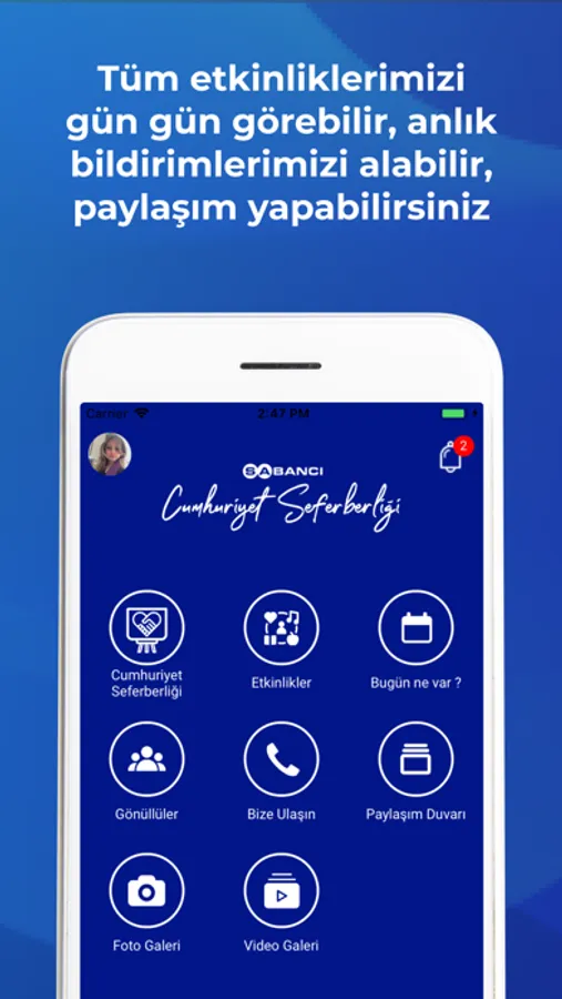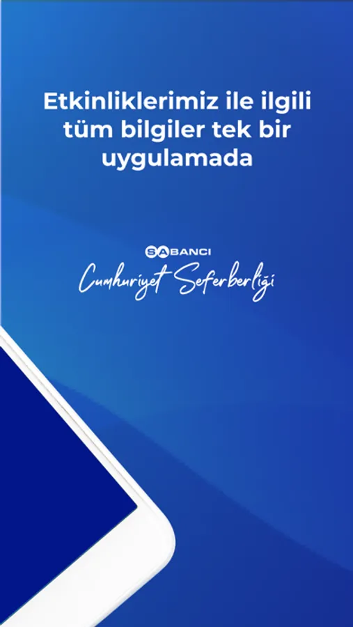 Sabancı Cumhuriyet Seferberliği etkinlikleri için hazırlanmış olan mobil uygulamamız üzerinden tüm etkinlik bilgilerine ulaşabilir. Kayıt olabilir, etkinliklerimiz ile ilgili anlık duyurulara ulaşabilir ve paylaşım duvarımızda paylaşım yapabilirsiniz.