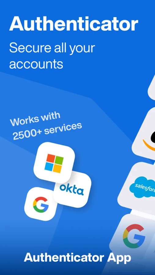 Our universal authenticator app is compatible with more than 2.500 websites and services including; Microsoft, Google, Salesforce, Robinhood, Facebook, PayPal, Amazon, Dropbox, Binance, Duo Mobile, Coinbase, Twilio, Discord, Okta, Twitter, Steam, Authy, ID.me, Snapchat and thousands more.