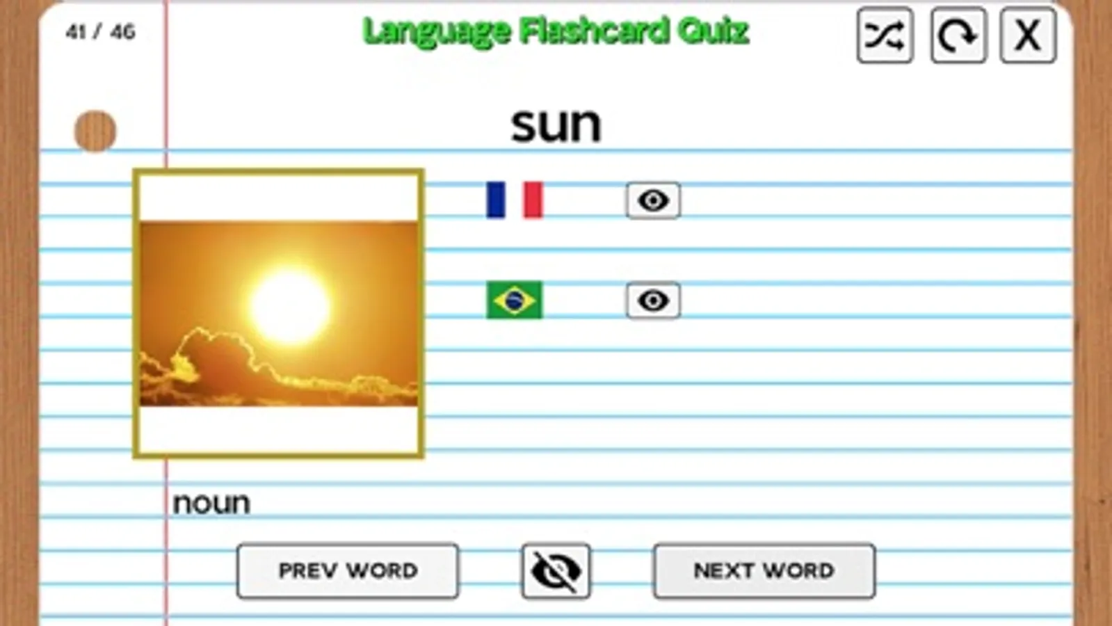 Most words include audio spoken by a native speaker, and some include pictures.