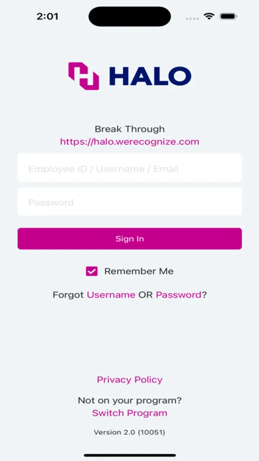 Your company must use HALO’s Total Vision Recognition program to use the werecognize mobile app.