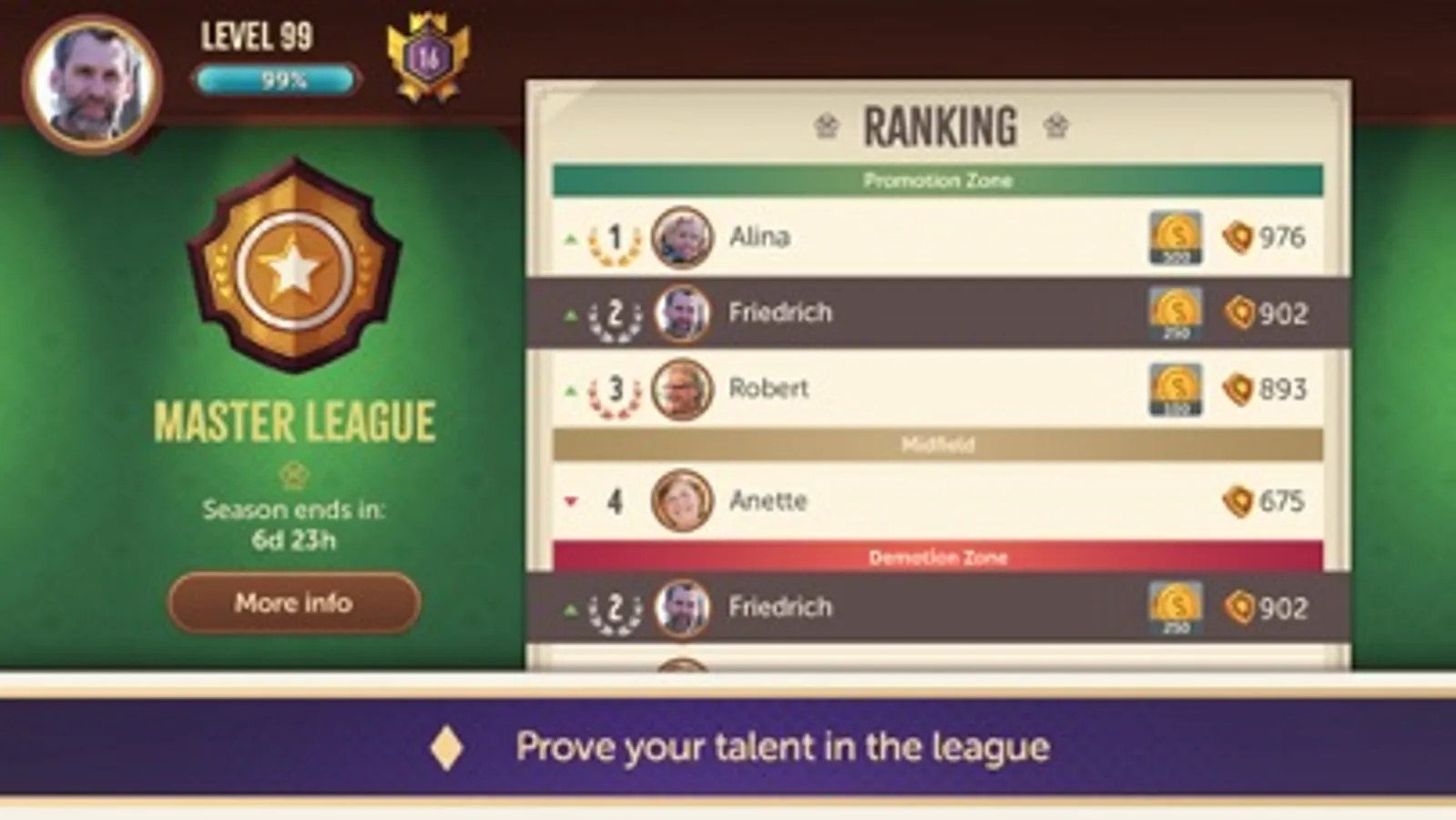 - FLAUNT YOUR SKILLS IN THE LEAGUE: rise up the ranks in our leagues and become a champion
