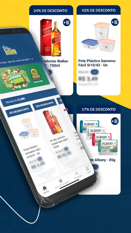Com o aplicativo do Meu Dom você tem acesso aos descontos exclusivos do Clube onde estiver. E ainda pode adicionar os seus itens preferidos a uma lista de compras ou criar uma lista de itens favoritos para acompanhar se entram em oferta.