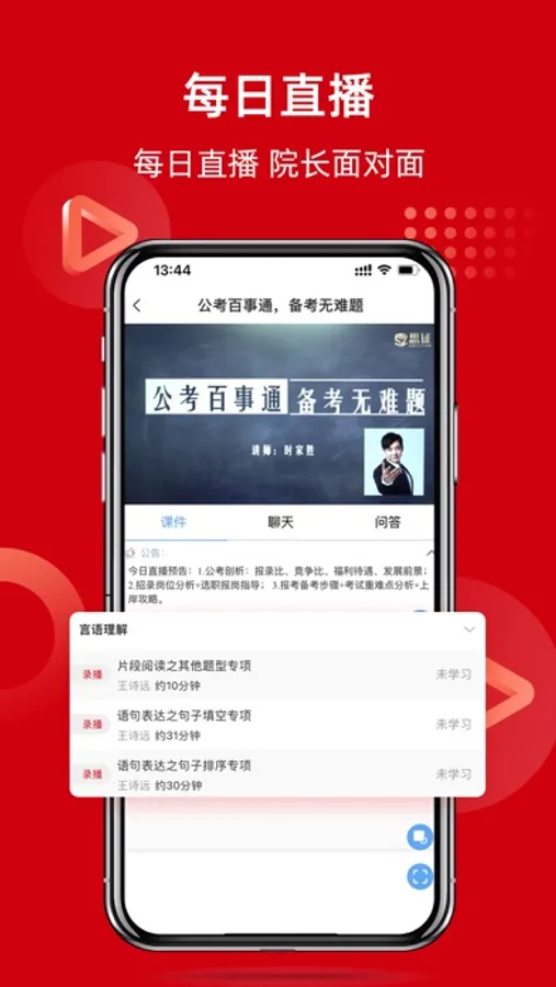 1.在线直播课:与老师、同学实时互动,解答、讨论课程难题;上课视频可缓存,反复观看回放与笔记;