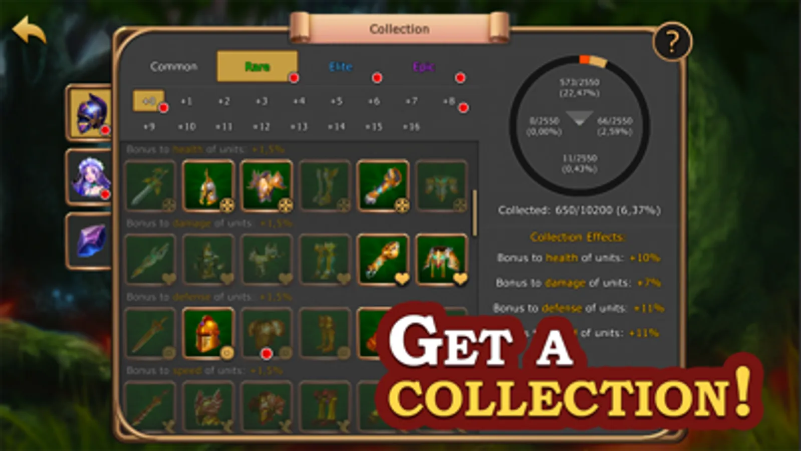 - Collect a set of equipment, heroes and gems acquired from the dungeon. Your collection is the key to strength, power and recognition..