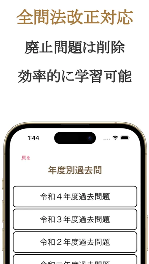 「年度」ごとにも、「試験科目」ごとにも学習ができる最新アプリです。
