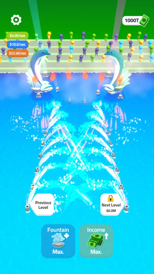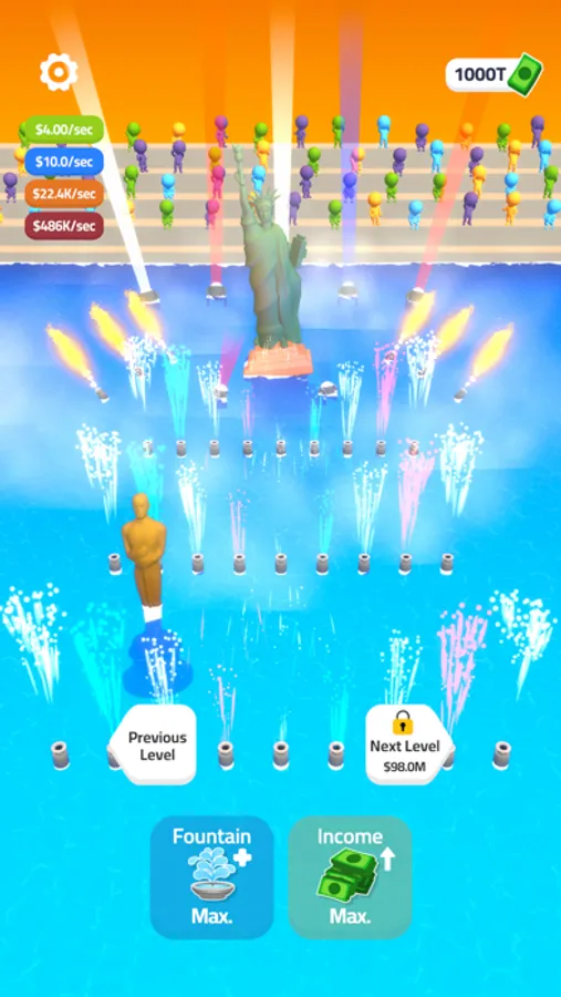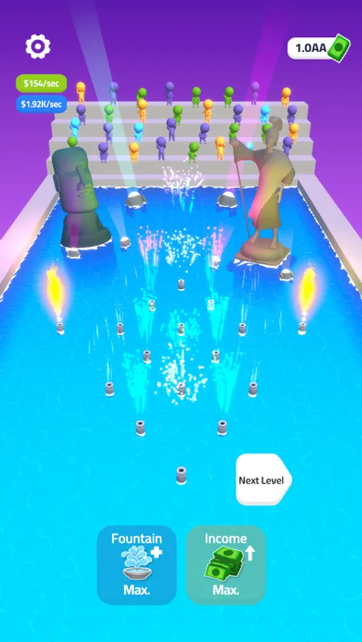 Each spurt of water generates some income by dazzling the crowd. Invest your money into more jets, more complex arrangements, and grander designs to reach fountain stardom!