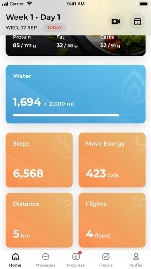 The app integrates with Apple Health to show your daily activity - distance, steps, active energy, and flights to help you better achieve your goals.