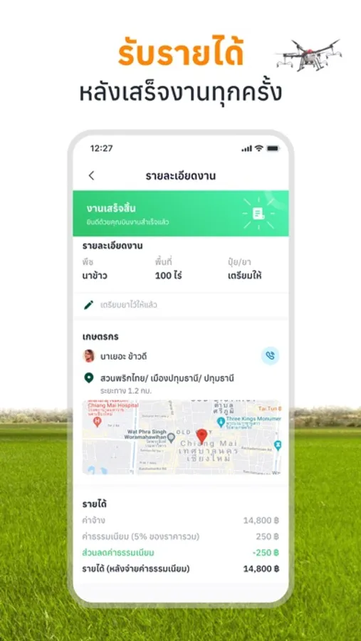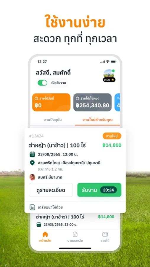 4.ทำงานเสร็จ กดจบงาน และรับเงินจากเกษตรกรทันที!