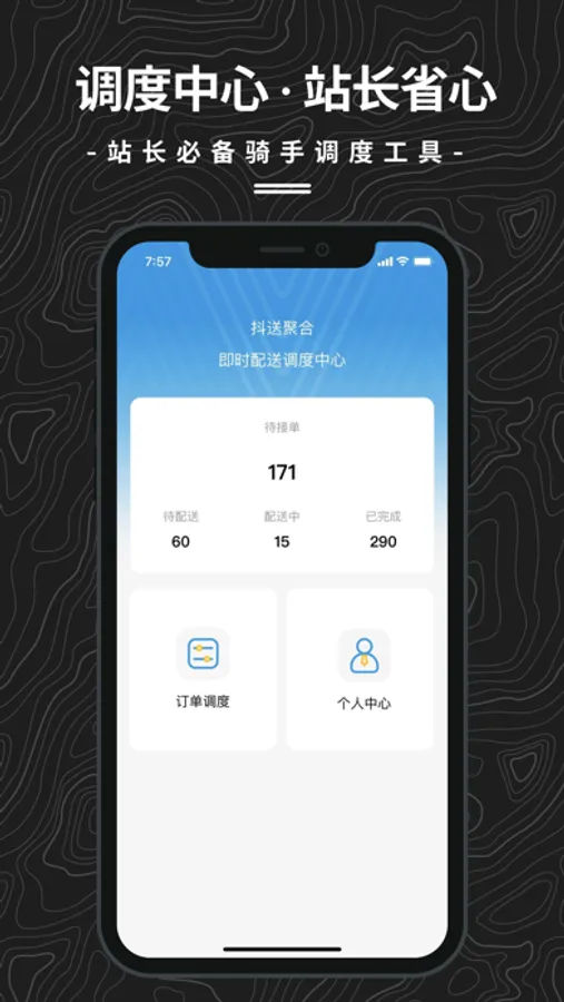 抖送调度端是一款专门针对抖送骑士管理定制的软件,软件系统包含了订单数量统计、订单调度、骑士调度、分配、转换订单等站点管理功能;为抖送站点和运营商提供一个更低成本、更安全、更方便的管理抖送骑士体验,帮助骑士更方便的送顺利单、保证骑士利益最大化与提升骑士们配送效率。