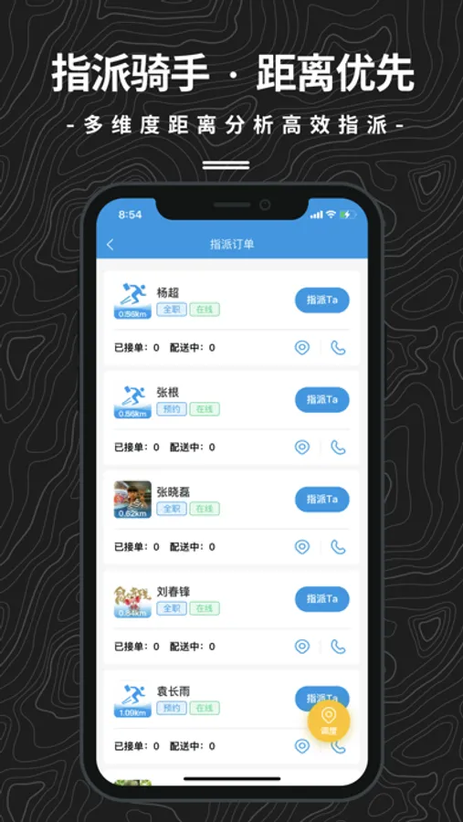 相对于传统的人工管理调度方式而言,抖送提供网页端、APP端等多种操作端口,让管理员彻底摆出早期的电话通知骑手订单路线进行繁琐派单,我们数据存储于云端,多重备份,管理员和调度员间订单数据共享,让您彻底摆脱口口相传、数据校验的繁琐过程。我们还提供调度员通知功能,动动手指就能让骑士知晓新订单,无缝衔接和送单员之间的良好互动,彻底与电话沟通说拜拜!