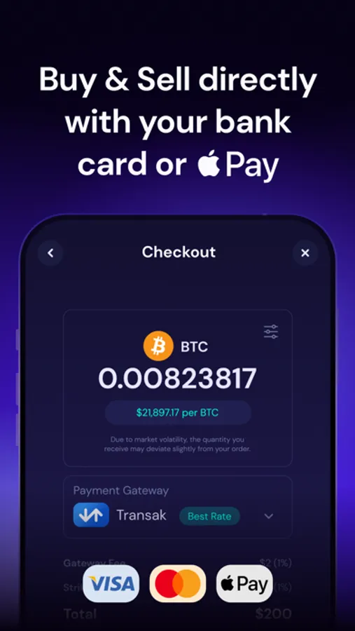 Easily go from Card to Crypto with our integrated on & off-ramp payments.