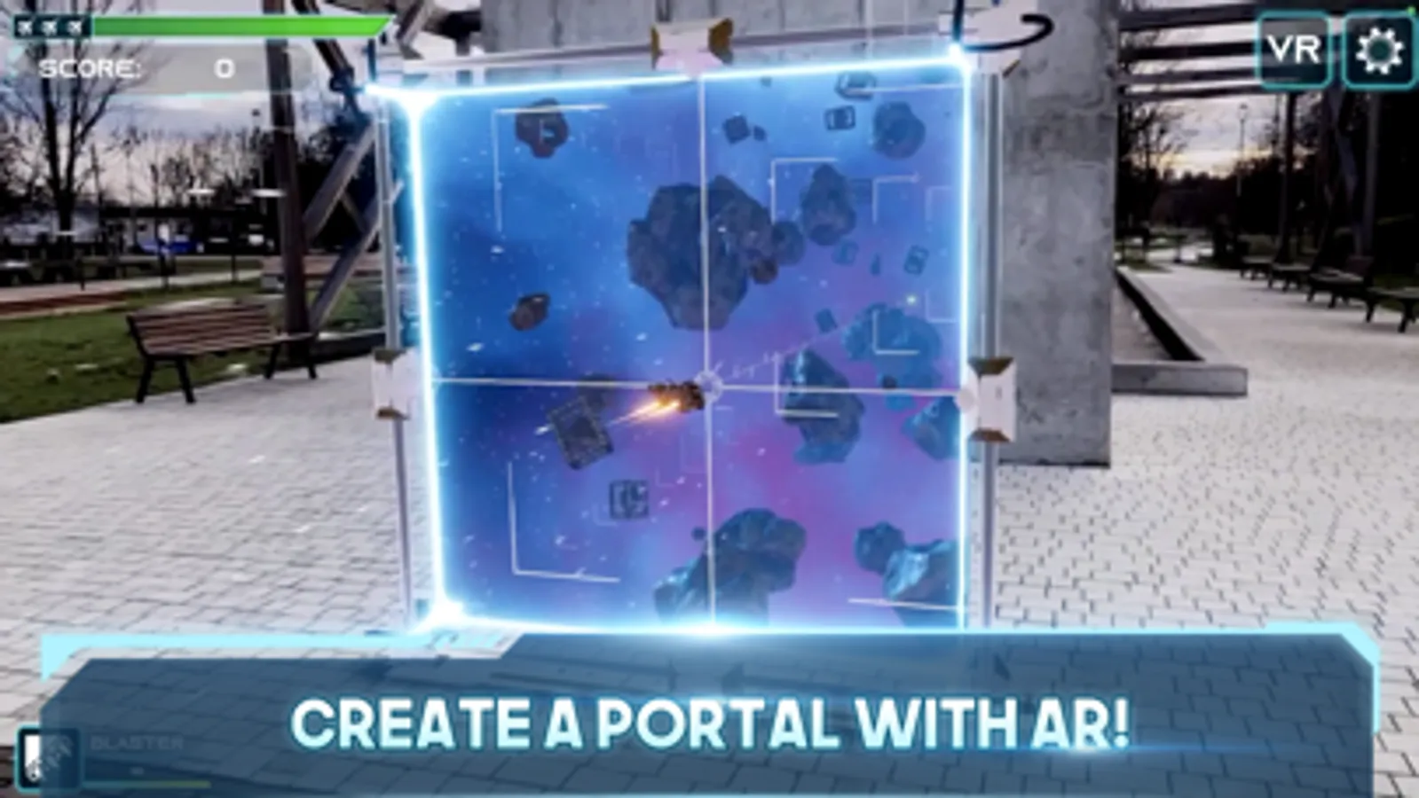 Turn on your camera and scan the area around you to create the 3D portal your ship will fly through. Maneuver your phone up, down, back and forth to steer your ship through space and attack the oncoming enemies.
