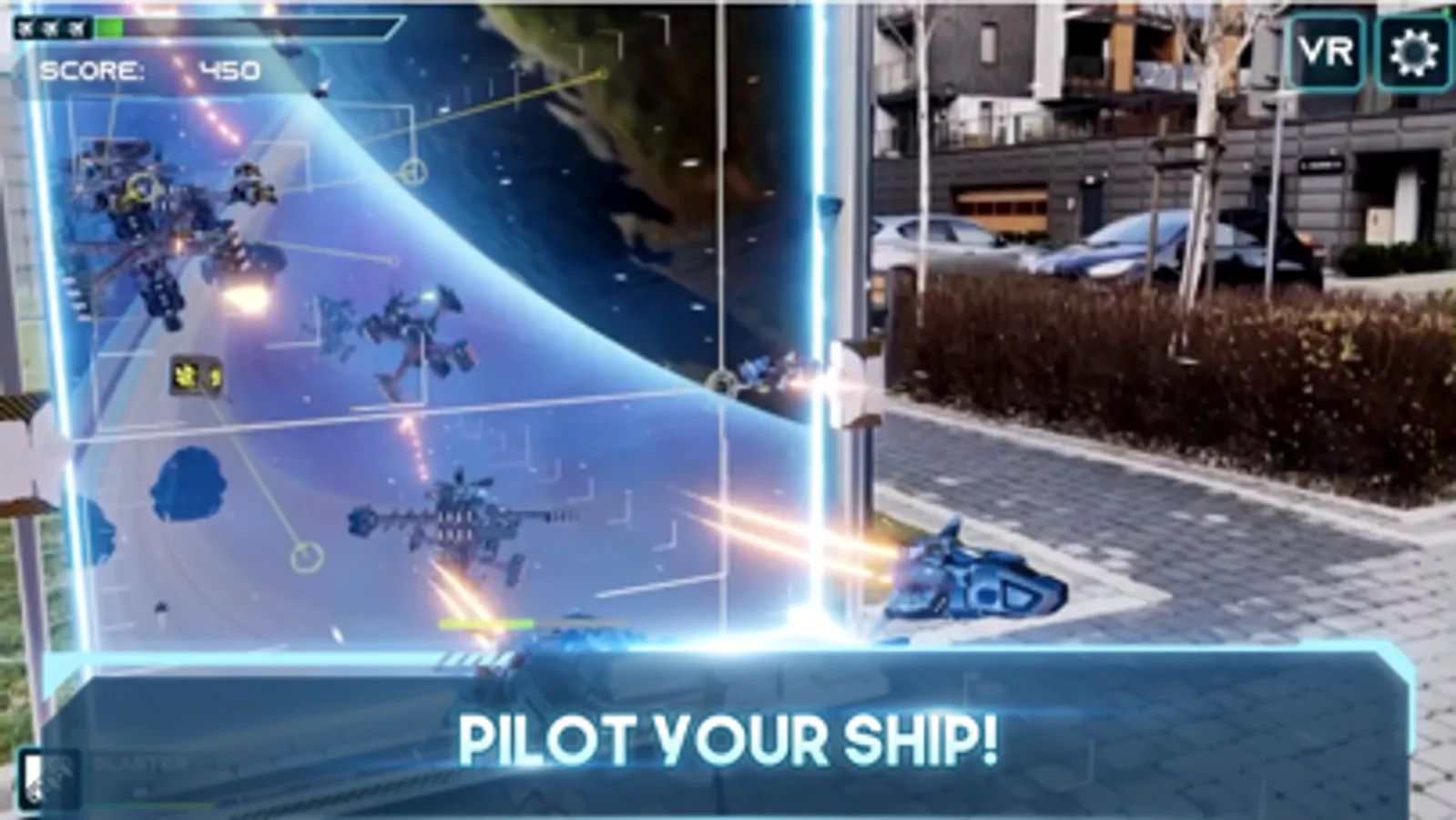 Collect power-ups to give you an edge in battle, and take on epic bosses as you test your skills as a space pilot. Don’t feel like playing in AR? Turn on VR mode to play full screen without any background.