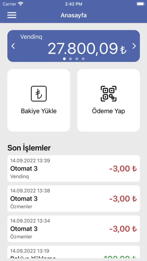 Vendinq uygulamasına telefon numaranız ile giriş yaptıktan sonra Vendinq destekleyen otomatlara QR kodu okutarak para yükleyebilirsiniz.