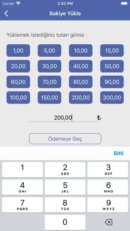 Bakiye yükle tuşuna tıklayarak kredi kartınız ile dilediğiniz kadar bakiye yükleyip harcayabilirsiniz.