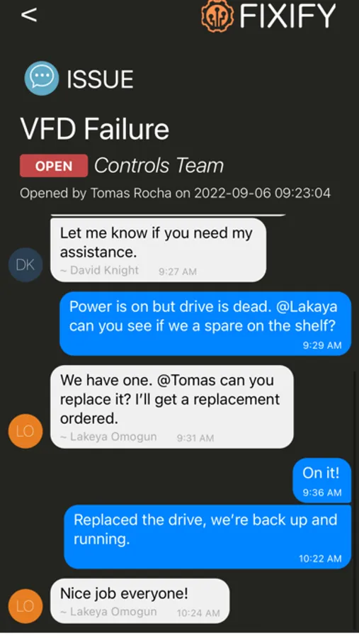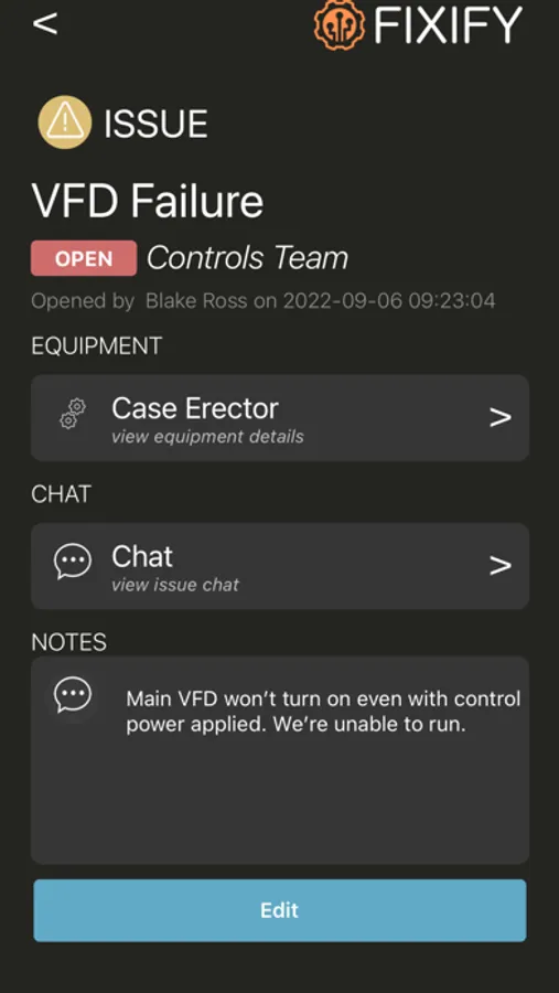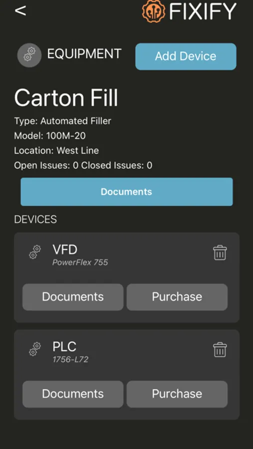 When issues arise on your production equipment Fixify will be the one place to view documentation, communicate with the team, order replacement parts and get you back up and running fast.