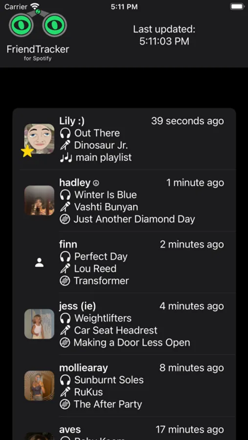 - Access any of your mutual followers' listening activities, even if they don't have FriendTracker installed