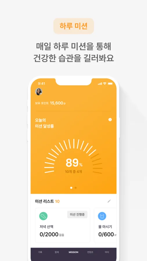 건강한 식습관, 운동습관, 생활습관을 위한 하루하루 다이어트 미션들을 완료할 때마다 얻는 미션포인트는 나를 위한 쇼핑을 할 수 있어 소소한 성취감을 느낄 수 있을 거에요. 그리고 언젠가 작은 실천들을 통해 멋지게 변화된 스스로를 발견하실 수 있을 거에요.