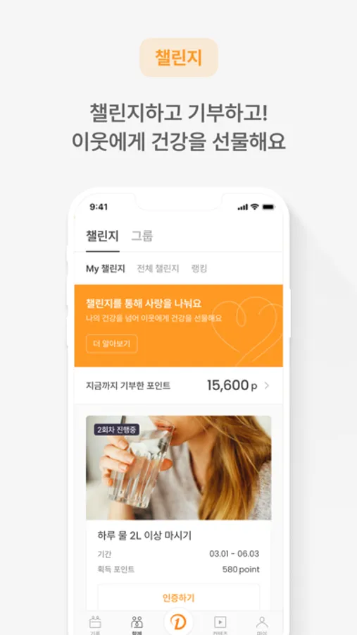 건강한 식습관, 운동습관, 생활습관 하루 다이어트 챌린지를 수행하면서 나의 건강을 넘어 다른 사람에게도 건강한 하루를 선물해요.