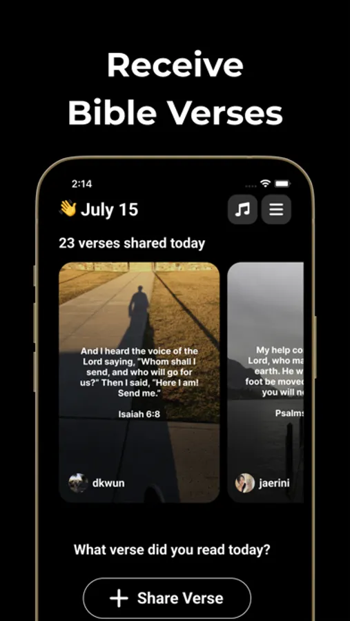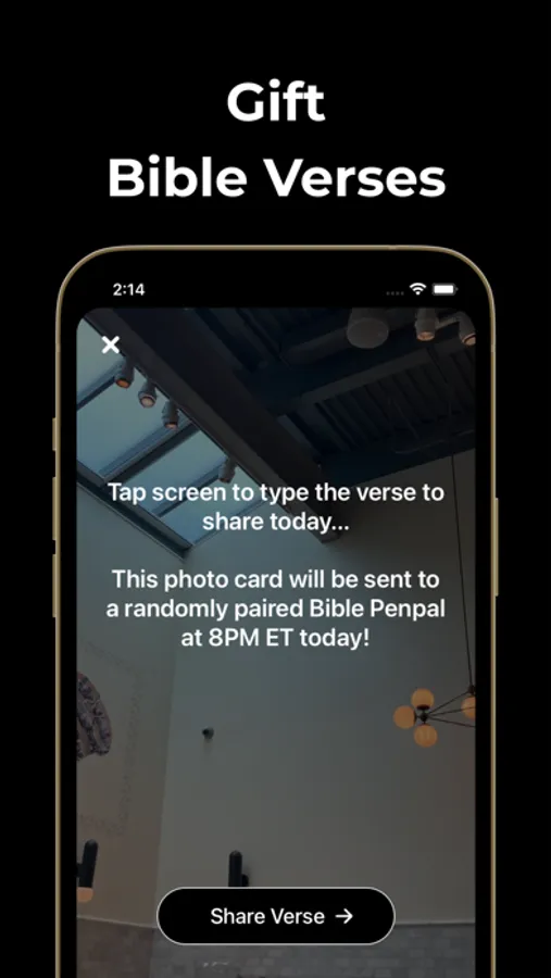 Zion is an app for Christians to exchange & gift each other Bible verses once a day. Upload a verse & you’ll get a verse from a randomly paired Bible Penpal at 8PM ET every day!