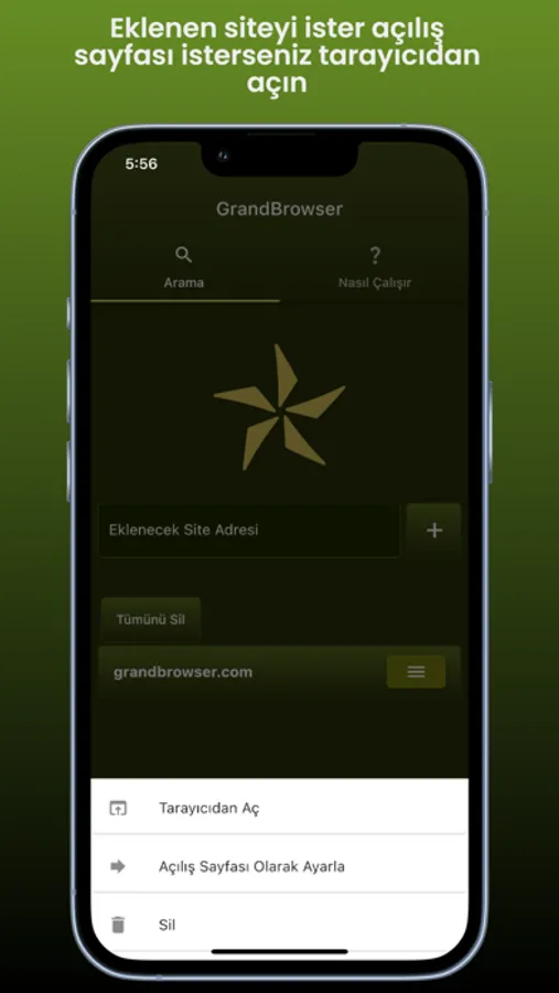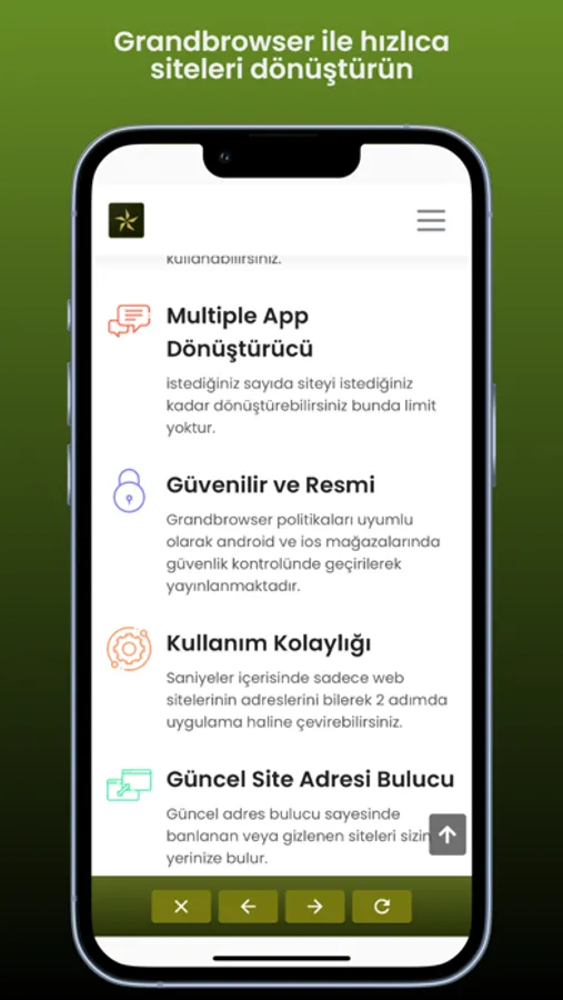grandbrowser sizin yerinize saniyeler içerisinde dilediğiniz web sitesini uygulamaya dönüştürür böylece daha kolay ve hızlı erişim imkanı sağlar.