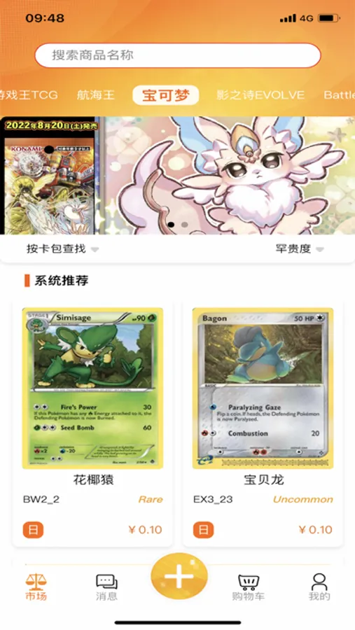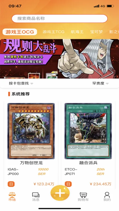 游戏王OCG、宝可梦卡牌游戏、黑白双翼、影之诗、卡片战斗先导者、ReBirth、航海王卡牌游戏、数码宝贝卡牌游戏、Battle Spirits、Z/X、Build Divide、ViVidz、OSCA等集换式游戏卡牌游戏交易市场,为广大TCG爱好者提供更安全、便捷的卡牌交易服务