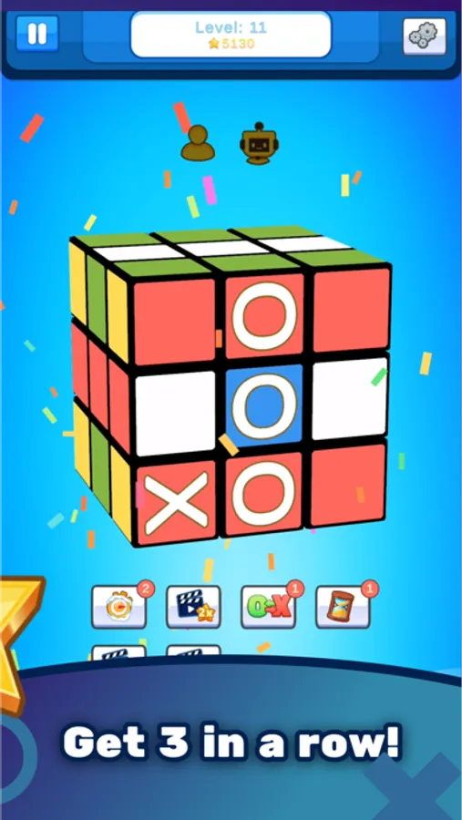 Get 3 in a row on a vertical, horizontal, or diagonal line before your opponent and win, but be quick as the cube turns, twists, and shuffles the play area in an unpredictable way! Place your mark with quick thinking and smart moves, and progress to the next level!